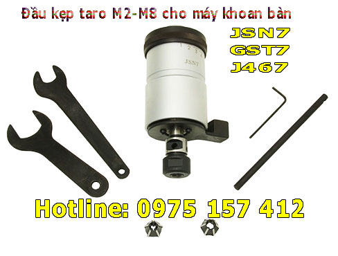 Đầu kẹp mũi taro JSN7, GST7, J467 được nhập khẩu từ nước ngoài. Đây là phụ kiện được thiết kế đặc biệt sử dụng trên các máy khoan bàn thông thường để taro. Nó có khả năng kẹp được mũi taro nhỏ từ M2-M8 để taro trên sắt thép, nhôm gang, khuôn mẫu.