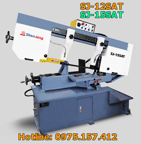 Máy cưa bán tự động SJ-15SAT hiệu Shen Jang là máy cưa phôi thép 380mm nhập khẩu từ Đài Loan. Đây là dòng máy cưa kim loại Semi-Auto hạng nặng chuyên cắt ngang, cắt góc trên sắt thép. Nó có khả năng cắt ngang 90 độ, cắt góc 45 độ trên nhiều kích thước phôi thép khác nhau. Đường kính cắt 90 độ trên thép tròn 380mm, thép vuông 350x350mm, thép hình hộp 280x520mm. Khung cưa xoay hỗ trợ cắt góc 45 độ trên phôi tròn 350mm, thép hộp 300x300mm, 300x380mm.