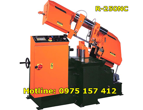 Máy cưa tự động R-250NC được nâng cấp từ máy cưa kim loại Semi-Auto SH-250R. Motor cắt vẫn là 2HP 380V 3pha, motor thủy lực công suất lớn hơn 1/2HP. Kiểu vận hành tự động NC, có cấp liệu tự động bằng con lăn. Do đó, máy cưa ngang 250mm này thích hợp cho việc cắt phôi to và nặng.
