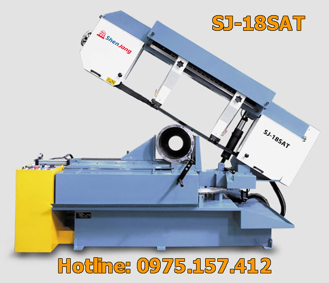Máy cưa kim loại 460mm SJ-18SAT hiệu Shen Jang là máy cưa vòng ngang Semi-Auto nhập khẩu từ Đài Loan. Nó là máy cưa phôi thép 460mm vận hành bán tự động, cắt được nhiều góc độ khác nhau. Máy cưa SJ-18SAT có khả năng cắt ngang 90 độ trên thép ống, phôi tròn 460mm, thép vuông 460x460mm, thép dầm 400x700mm. Khả năng cắt góc 45 độ trên phôi tròn 460mm, phôi hình hộp 340x500mm. Khả năng cắt góc 60 độ trên thép ống 350mm, thép hộp 330x330mm.
