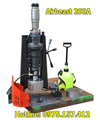 Máy khoan từ Airbeast 200A là dòng máy khoan từ hạng nặng 200mm hiệu JEI nhập khẩu từ Châu âu. Nó hoạt động bằng khí nén với khả năng khoan lỗ to trên thép tấm, bảng mã, mặt bích, thép dầm. Đường kính khoan lớn nhất 45mm với mũi khoan xoắn, 12-200mm bằng mũi khoan từ. Ngoài ra, máy khoan từ khí nén Airbeast 200A còn có khả năng taro lớn M44, vát miệng lỗ phi 110mm. Do đó, nó thường được dùng nhiều trong cơ khí, đóng tàu..