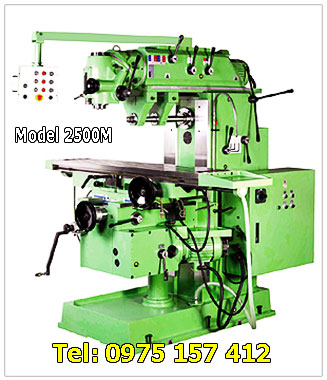 Máy phay đa năng 2500M được cải tiến đôi chút dựa trên máy phay đa năng Model 2500UM. Đầu phay ngang có thiết kế gá trục phay ngang cho phép gắn dao phay đĩa, phay modun, móc rãnh dễ dàng hơn.