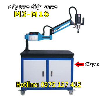 Máy taro servo M3-M16 còn gọi là máy taro cần dùng điện M3-M16 bán kính 1200mm. Nó chuyên dùng để taro lỗ trên sắt thép, khuôn mẫu. Kiểu vận hành đơn giản với màn hình cảm ứng, cho phép nhập trước độ sâu taro, tốc độ taro. Máy taro cần dùng điện M3-M16 thích hợp taro trên các đường kính phôi lớn hoặc phôi dài.