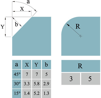 – Chiều cao vát (góc 45 độ): =/< 10mm