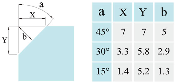 – Chiều cao vát (góc 45 độ): =/< 10mm