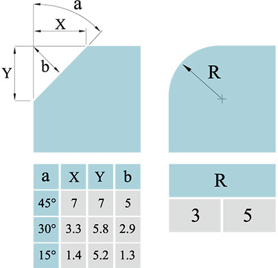 – Chiều cao vát (góc 45 độ): =/< 10mm